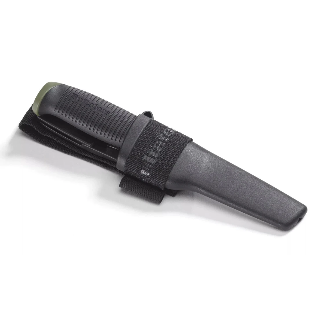 - Tekstilna traka za pričvršćivanje na kaiš do 80 mm širine sa držačem za fire steel (kresivo) za paljenje vatre. Ova traka može da se skine ukoliko želite da futrolu zakažite za dugme na radnoj odeći.