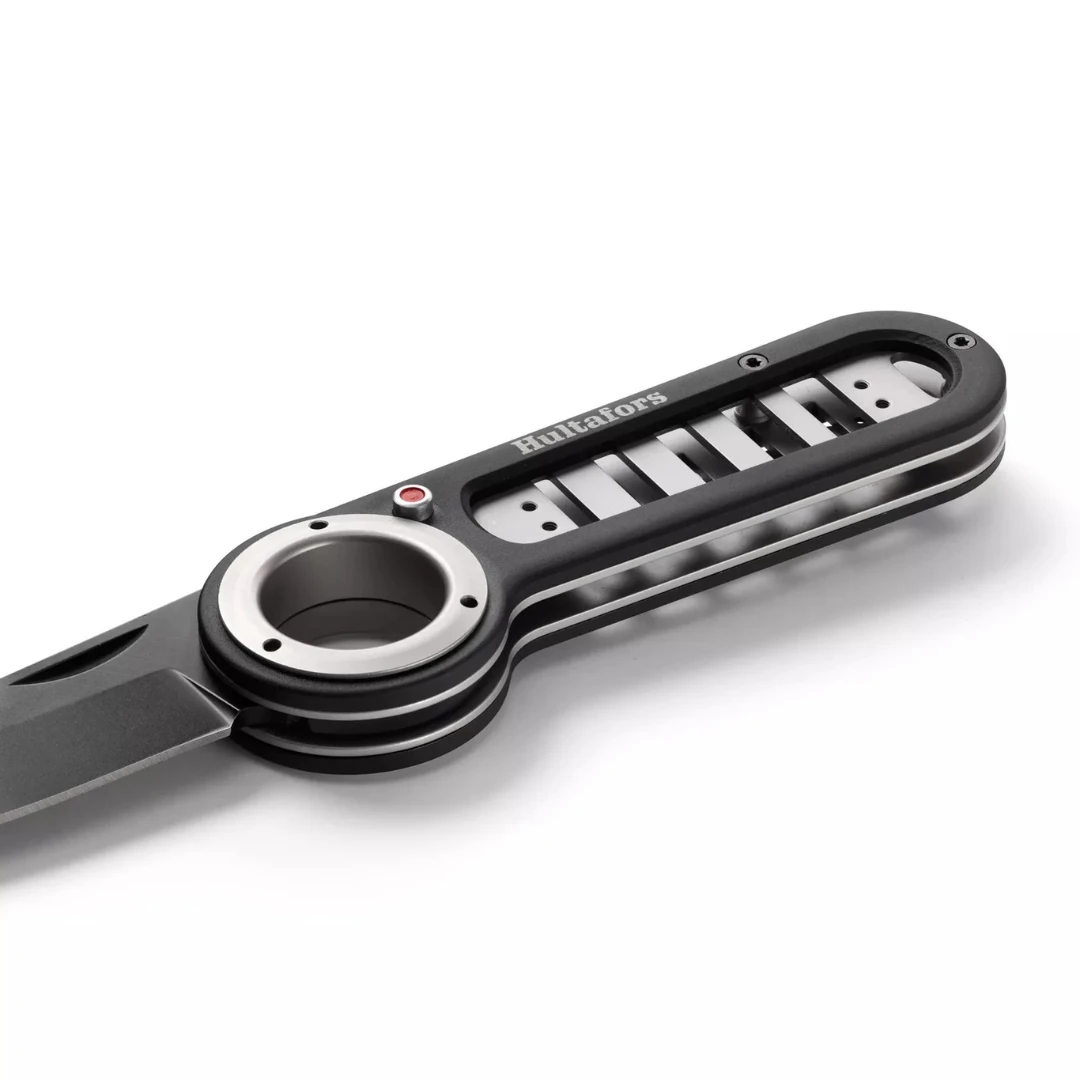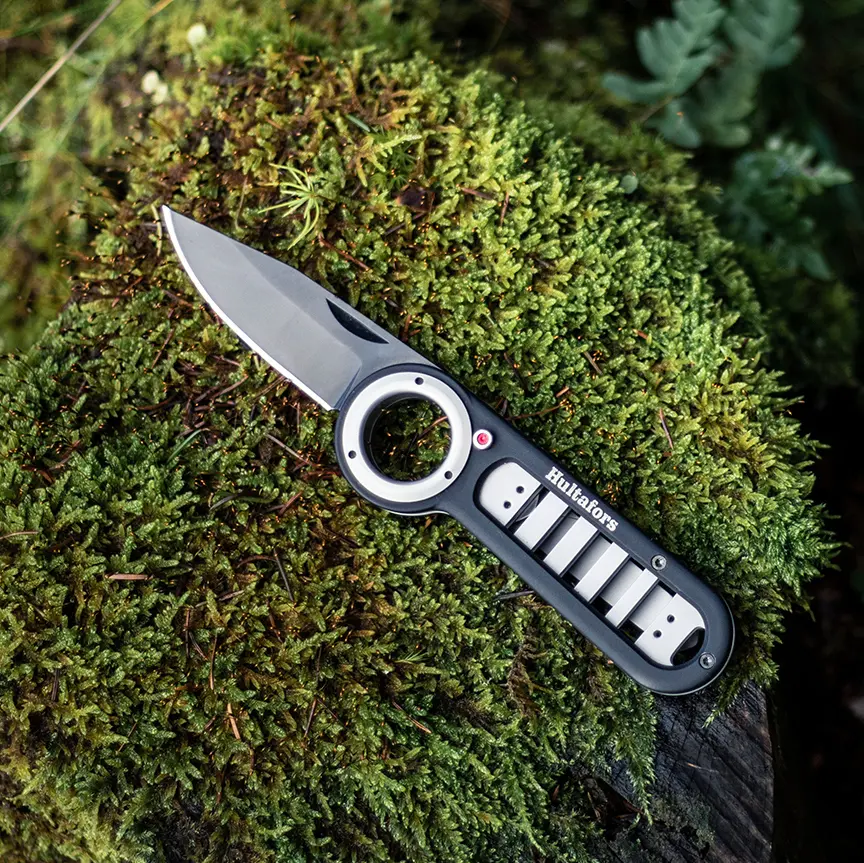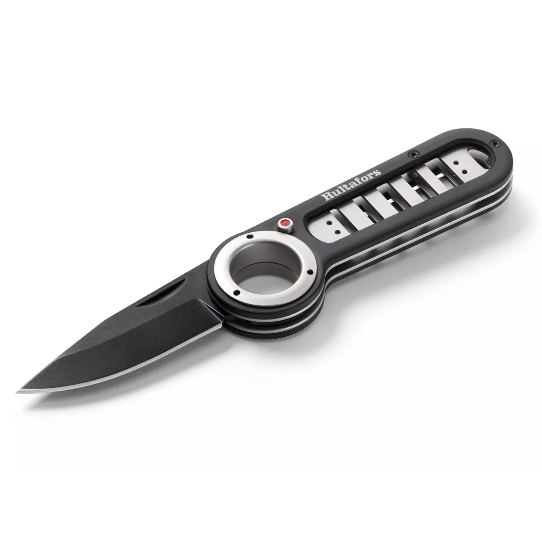 Sklopivi nož sa aluminijumom, delovima od nerđajućeg čelika i obložen crnom oštricom od nerđajućeg čelika. Savršen pratilac u šumi ili na ribolovu. Kompaktan dizajn sa velikom površinom upotrebe. Jednostavno i sigurno zaključavanje sečiva dugmetom na bočnoj strani drške. Kopča za remen je reverzibilna i može se montirati na obe strane ručke. To omogućava da odaberete kako želite da nosite nož, pričvršćen za kaiš ili na unutrašnjoj strani džepa. Nož se može koristiti zajedno sa Hultafors Fire Steel-om.